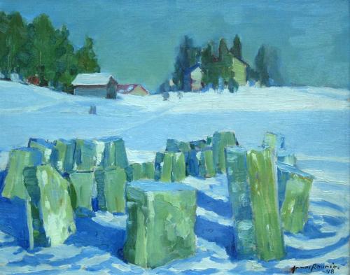 ”Taiteen inflaatio on tosiasia nyt jo. Askarrellaan, tehdään käsityötä, mauttomia ja ruokottomia kuvia. Sitten huudetaan ja ihmetellään, ettei niitä kukaan osta kotinsa seinille. Kyllähän minäkin voisin tuoda esim. traktorin näyttelyyn, jos se johonkin salonkiin mahtuisi, ja pistää sille nimeksi ”Työn laulu”. Minulla ei kuitenkaan ole varaa ostaa traktoria. Minä käytän vain näitä halpoja materiaaleja, maalia ja pensseliä.”
