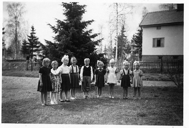Lapsia Killossa lastenseimen pihalla 1953. Kuva: Merja Tissari