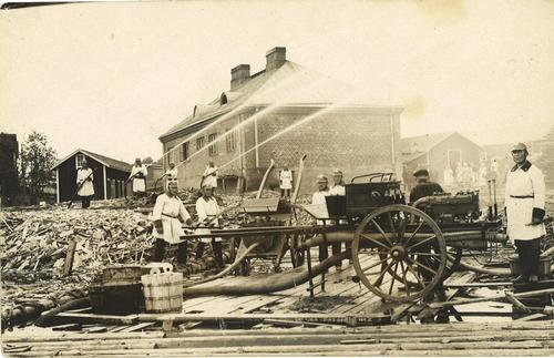 Vielä 1920-1930-luvuilla 90% Pirkkalalaisista sai elantonsa maataloudesta. Kuvan sahatyöläiset edustivat sitä harvalukuista joukkoa, joka ei työskennellyt maatalouden parissa.