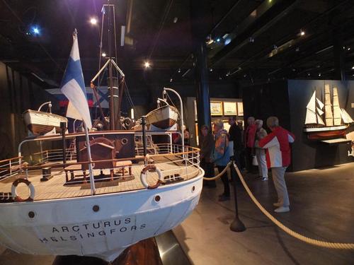 Arkkitehti Ilmari Lahdelman suunnittelema Vellamo valmistui Kotkan kantasatamaan v. 2008. Sen julkisivut ovat peltiä ja lasia. Sisätilojen muodot ovat kaarevia. Sekä seinissä että lattioissa on käytetty runsaasti puuta. Talossa toimivat Suomen merimuseo, merivartiomuseo sekä Kymenlaakson maakuntamuseo. Julkisessa rakentamisessa tuttuun tapaan talon 26 miljoonan euron kustannusarvio ylittyi, lopullisten kustannusten ollessa 38 miljoonaa. Tunnin mielenkiintoisen opastetun kierroksen jälkeen meillä oli tilaisuus jatkaa tutustumista omatoimisesti ja käydä monipuolisessa museokaupassa. Vierailumme kruunasi maittava Vellamo buffet talon Laakonki-ravintolassa.