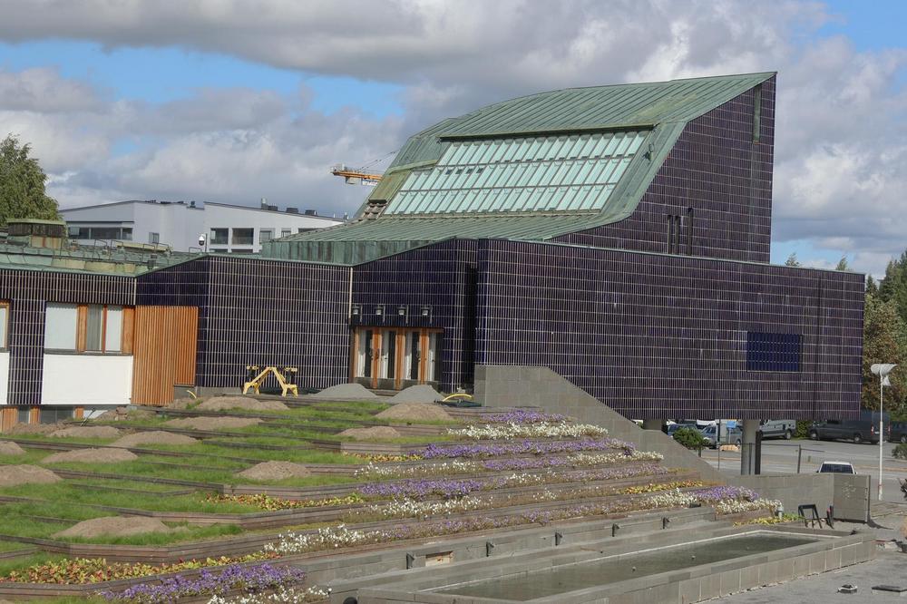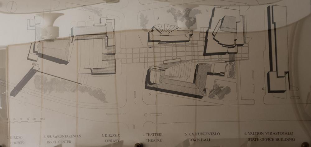 Seinäjoen ensimmäinen kohteemme oli akateemikko Alvar Aallon suunnittelemien mukaan rakennettu hallinto- ja kulttuurikeskus, Aalto-keskus, joka on yksi Suomen merkittäviä arkkitehtoonisia kokonaisuuksia. Keskus käsittää kuusi rakennusta: Lakeuden ristin, kaupungintalon, kaupunginkirjasto-maakuntakirjaston, seurakuntakeskuksen, valtion virastotalon ja teatteritalon. Tutustuimme Lakeuden ristiin, kaupungintaloon, teatteritaloon sekä Aallon kirjaston lähelle, tätä tyyliltään myötäillen, myöhemmin rakennettuun hienoon Apila-kirjastoon. Se on yhdistetty maanalaisella käytävällä vanhaan kirjastorakennukseen. Lakeuden ristin kellotornin korkeus on 65 metriä ja alttari on 60 cm. ulko- ovea alempana. Sama maaston muoto jatkuu myös pihalla.